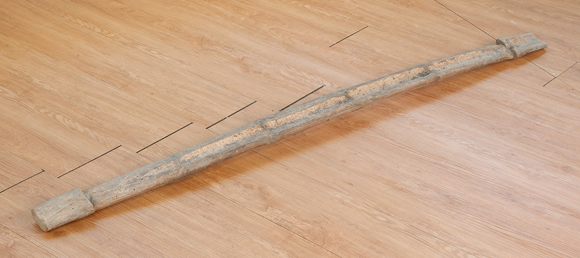 三顆銅珠,小圓珠釘下後浮出扁擔表面,可以卡住所擔的物品,防止挑物下滑。